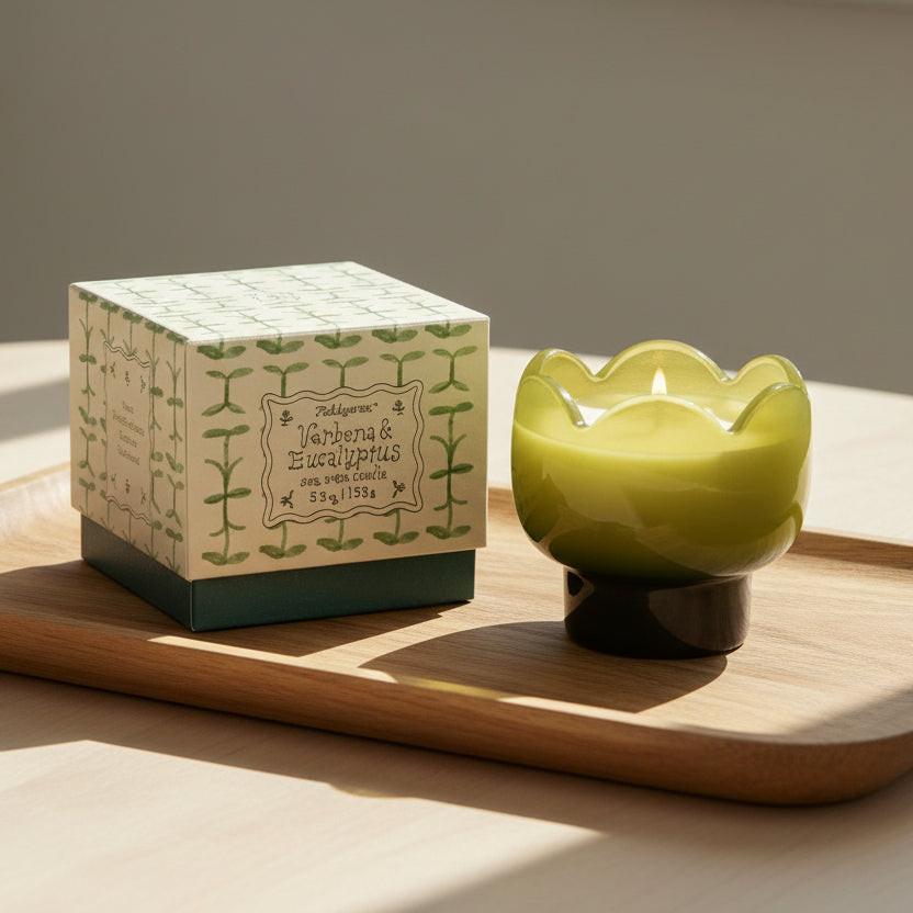Hand Blown Green Bubble Glass Candle Tabac & Pine