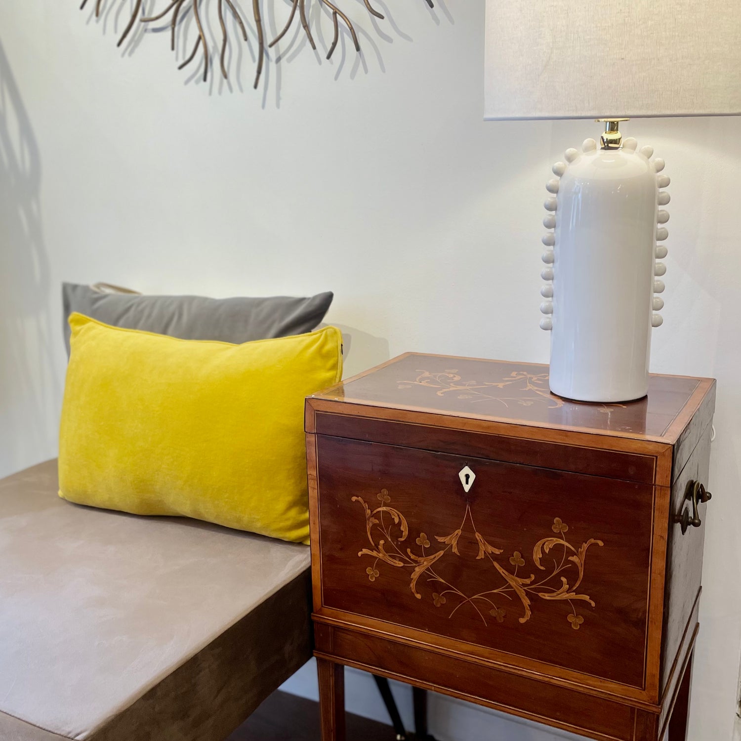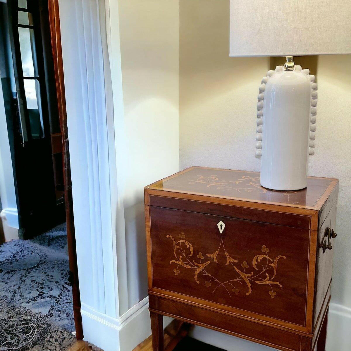 This antique Georgian Cellarette features an intricate original inlaid design that adds charm and sophistication to any interior. Its timeless craftsmanship is sure to be admired by all.