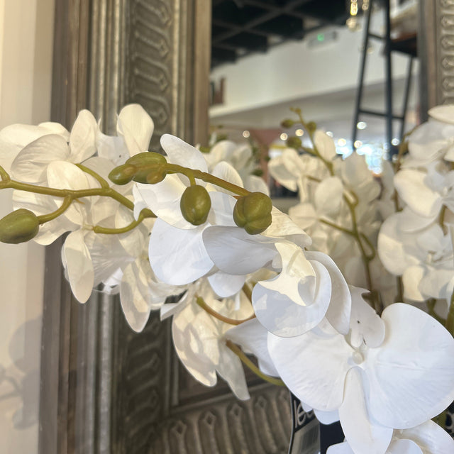 The wired stem allows for easy shaping and arranging, making it perfect for use in tall vases, statement floral displays, or as part of a larger artificial flower arrangement. Standing at an impressive height, this orchid stem is ideal for modern interiors, weddings, and event décor.