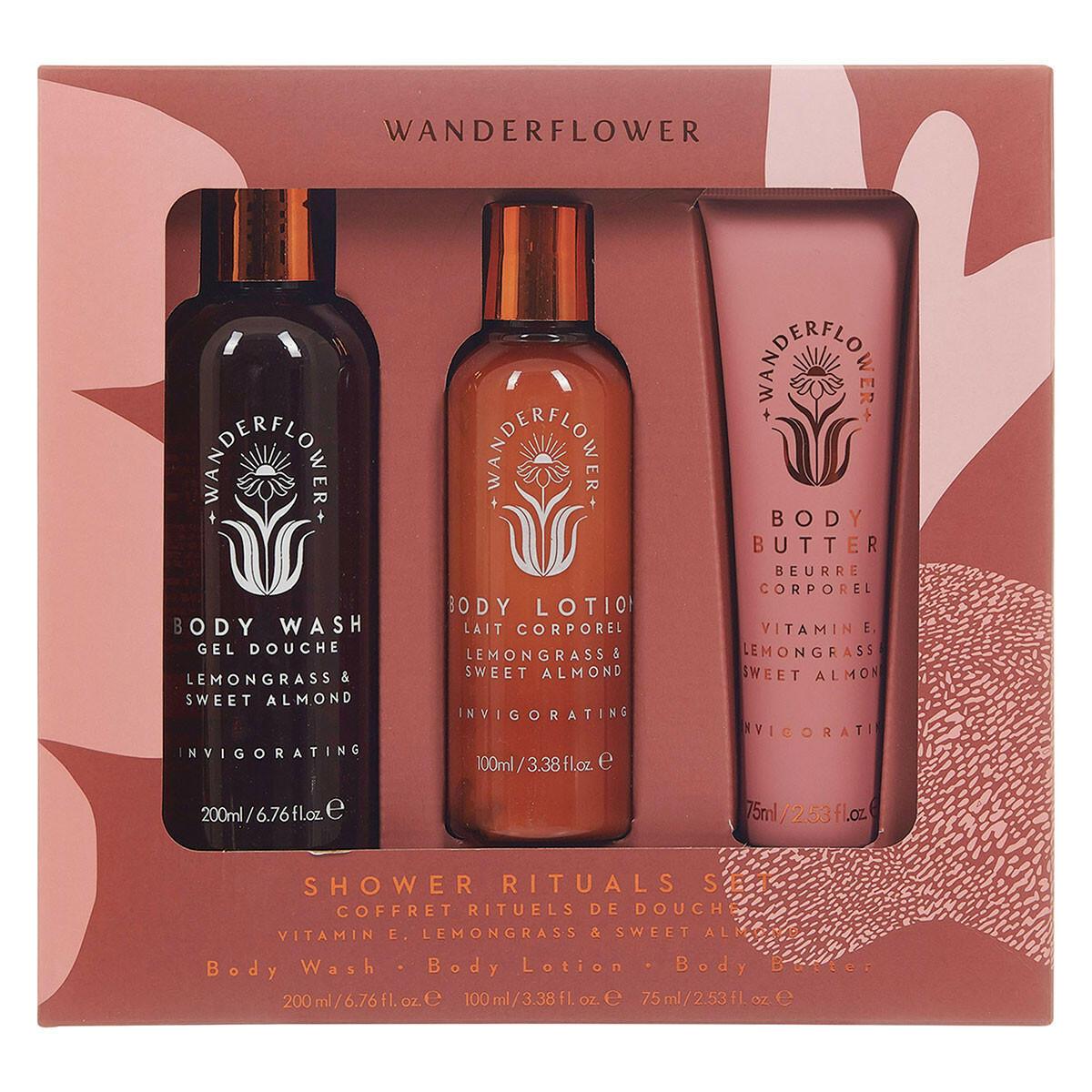Our Wanderflower Shower Rituals Set will energise your soul with its invigorating fragrances of Lemongrass & Sweet Almond. This set contains Body Wash, Body Lotion & Body Cream.