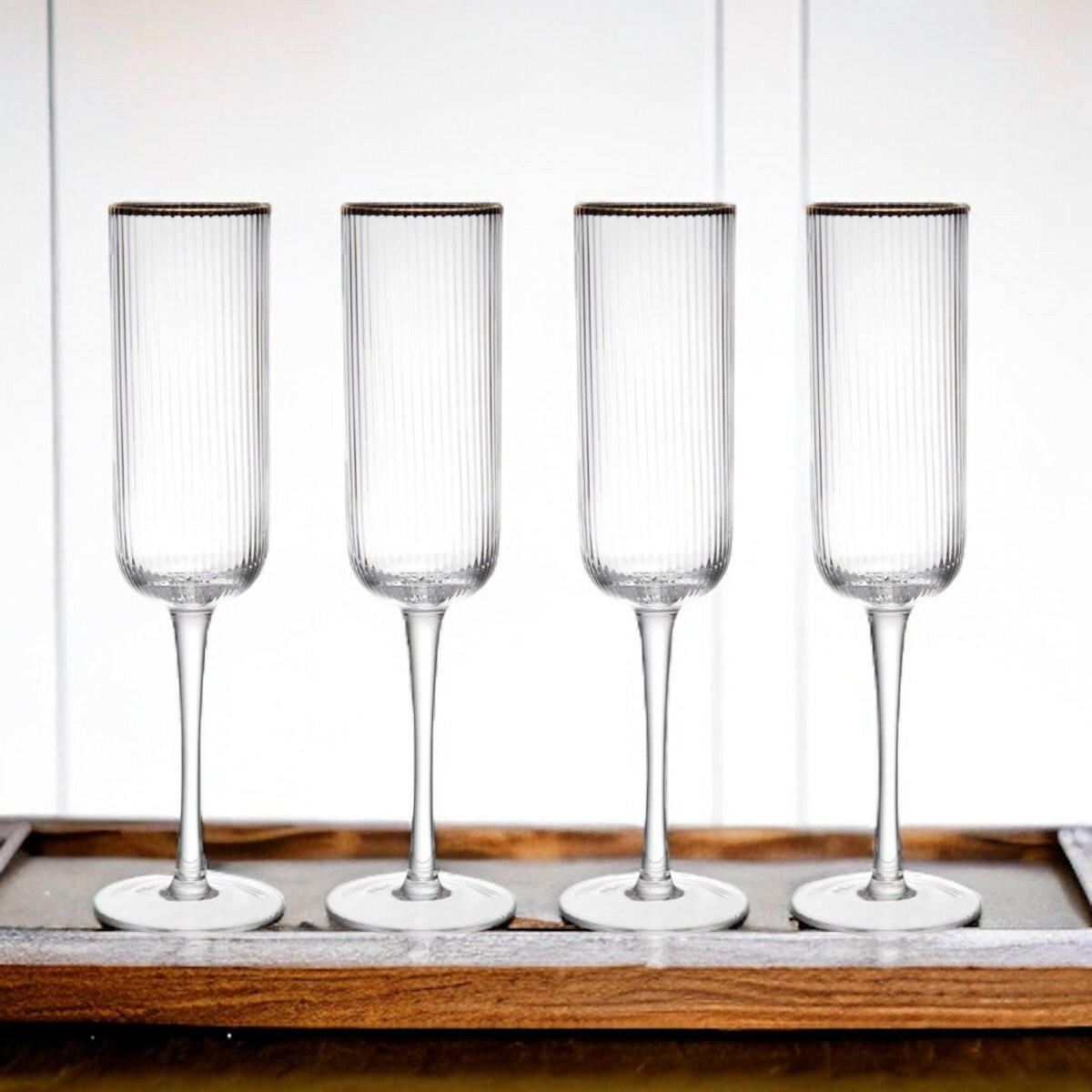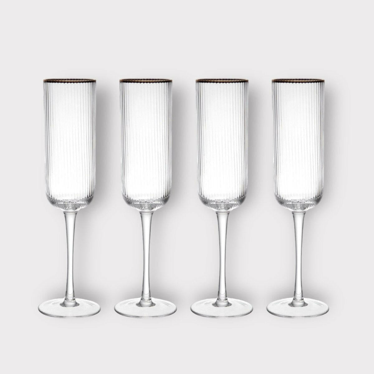 Finished with an opulent gold rim on top, the glasses are perfect for serving Champagne or cocktails.