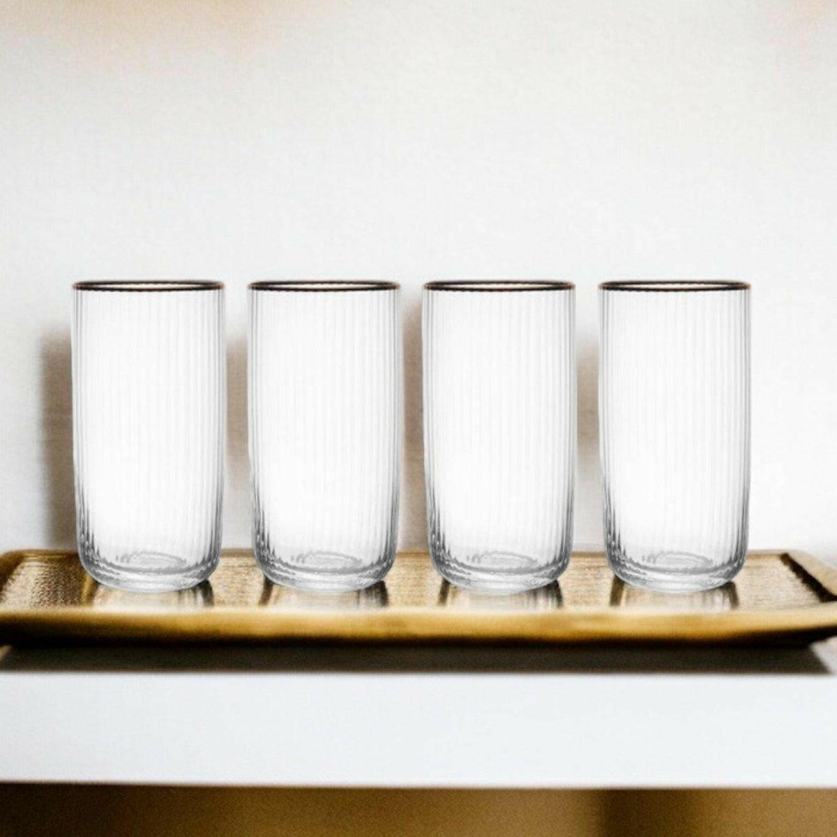 Finished with an opulent gold rim on top, the glasses are perfect for serving Champagne or cocktails.