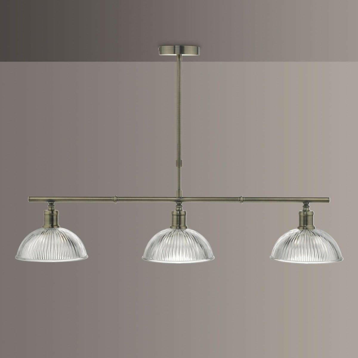 The lovely mid-century inspired Dara features prismatic glass with detailed metalwork, complete with an antique brass finish.