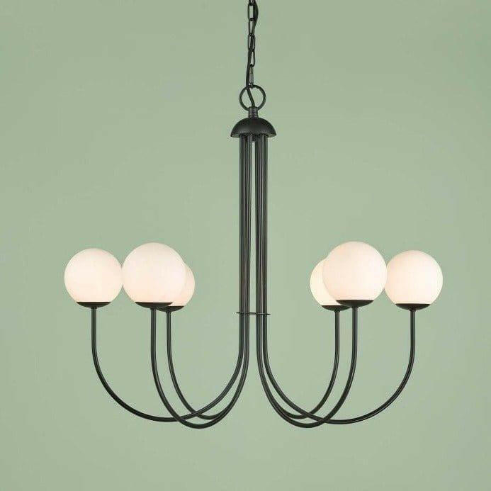 The Ornella 6 Light Pendant Matt Black & Opal Glass ORN0622 is a large pendant light in a matt black finish. Complete with smooth opal glass, this fitting is perfect for any living space.