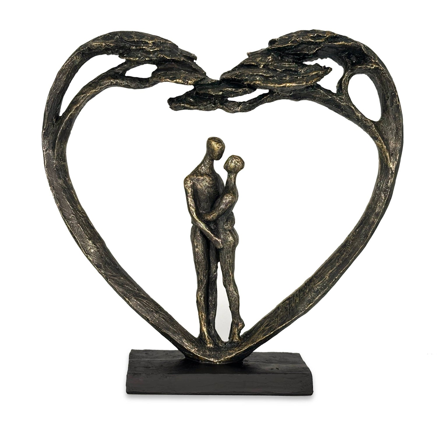 Romantic Symbolism – This sculpture showcases a couple standing within a heart-shaped tree, beautifully symbolizing love, unity, and enduring connection. Perfect for romantic home décor themes.