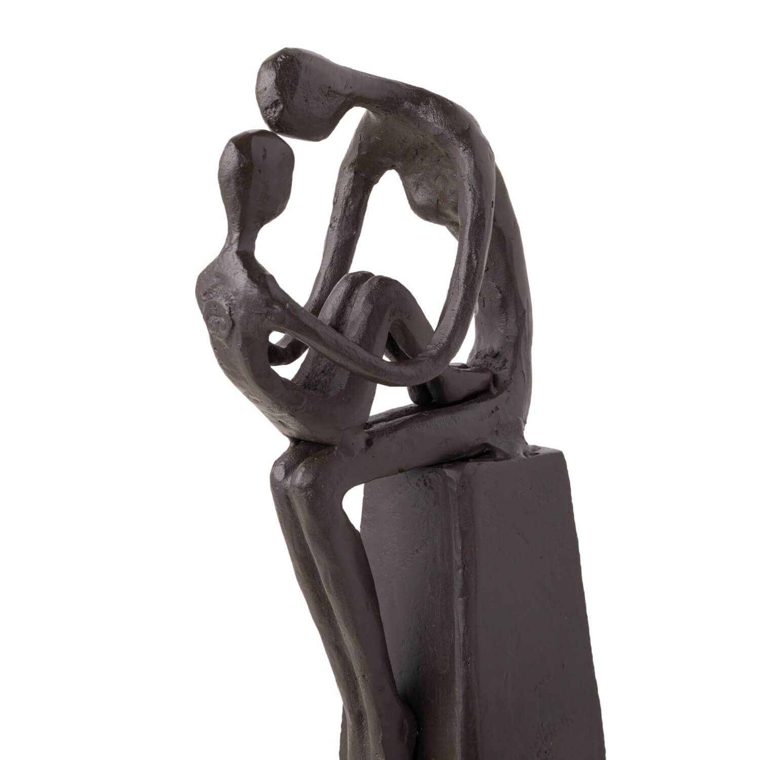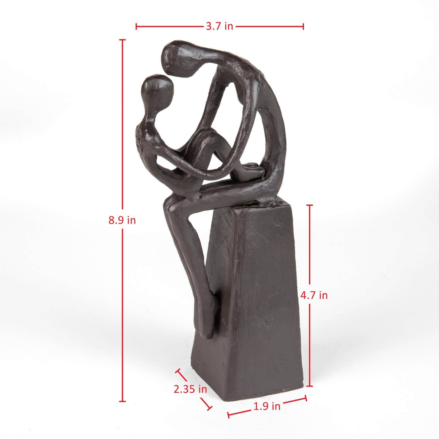 Expertly handcrafted from solid cast iron and finished in a deep, elegant dark brown, this sculpture features a naturally uneven silhouette that highlights its artisanal, handmade appeal. The design depicts a mother holding her child in her lap, their forms intertwined in a seamless embrace — a touching representation of unity and care.