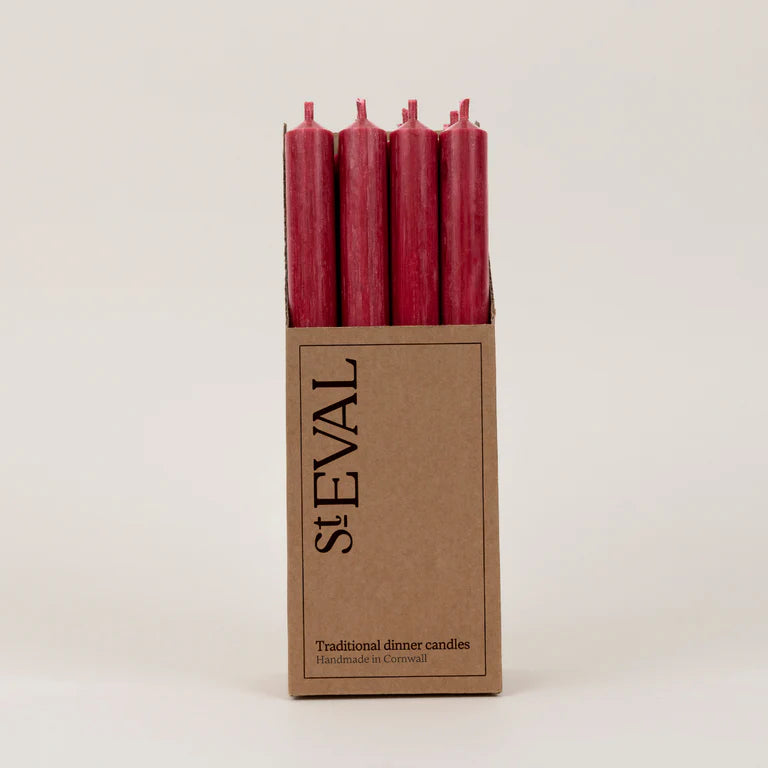Designed to burn for up to 10 magical hours, these dinner candles cast a warm, flickering glow, making them the perfect guardians of unforgettable moments. Whether you're enjoying a dinner party or simply savoring the quiet twilight, our 10" pink candles provide a bold, enchanting flair to any occasion.