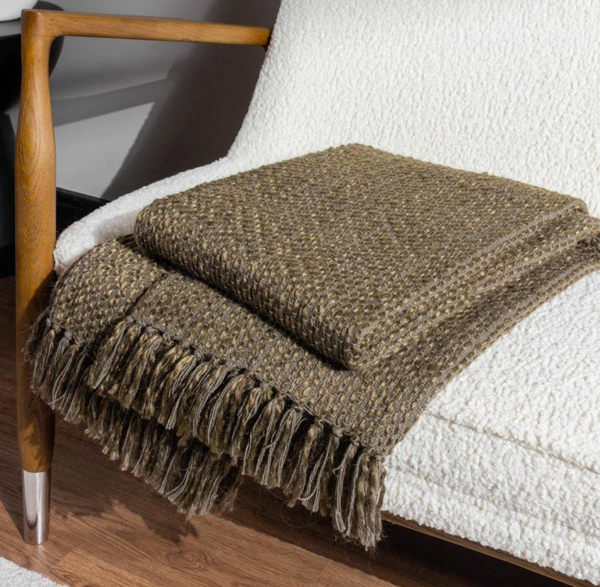 Hoem Morni Woven Fringed Throw Willow