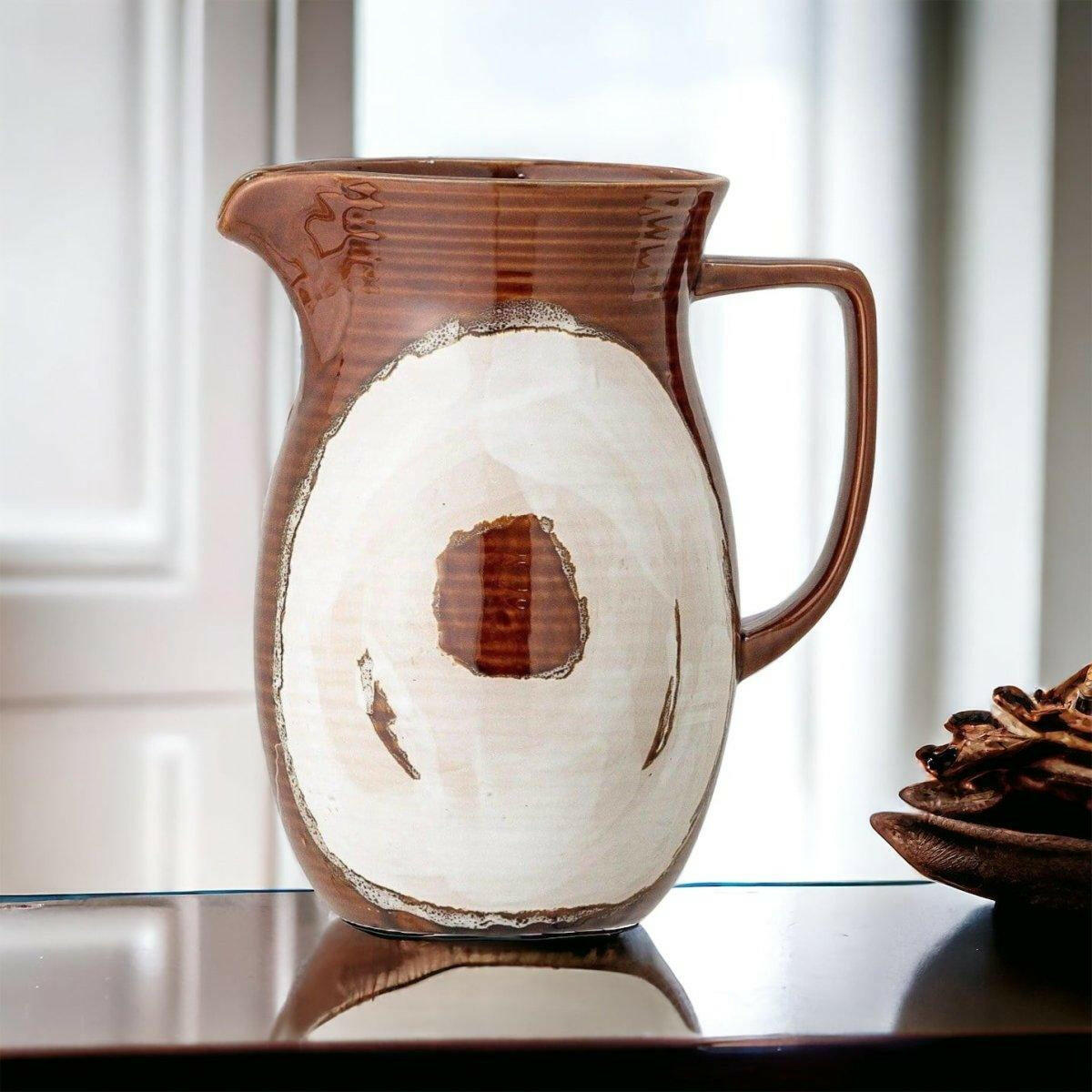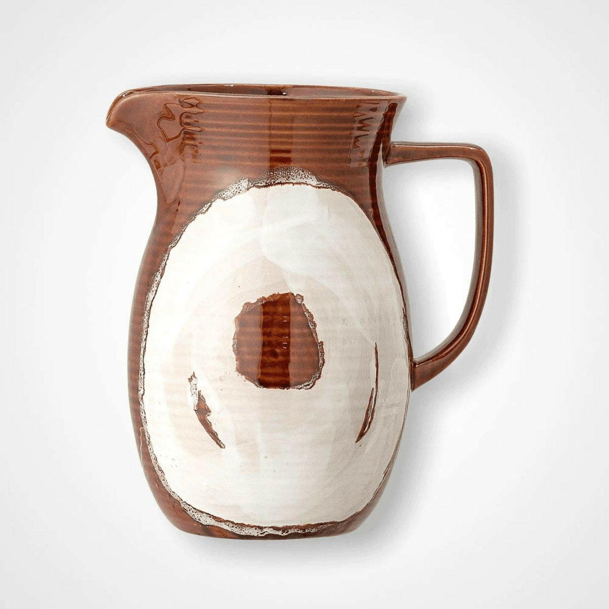 The Willow stoneware jug by Bloomingville is a stunningly simple jug in terracotta glaze and white design on one side. Due to the nature of the glaze and item being handcrafted, color variations may occur.