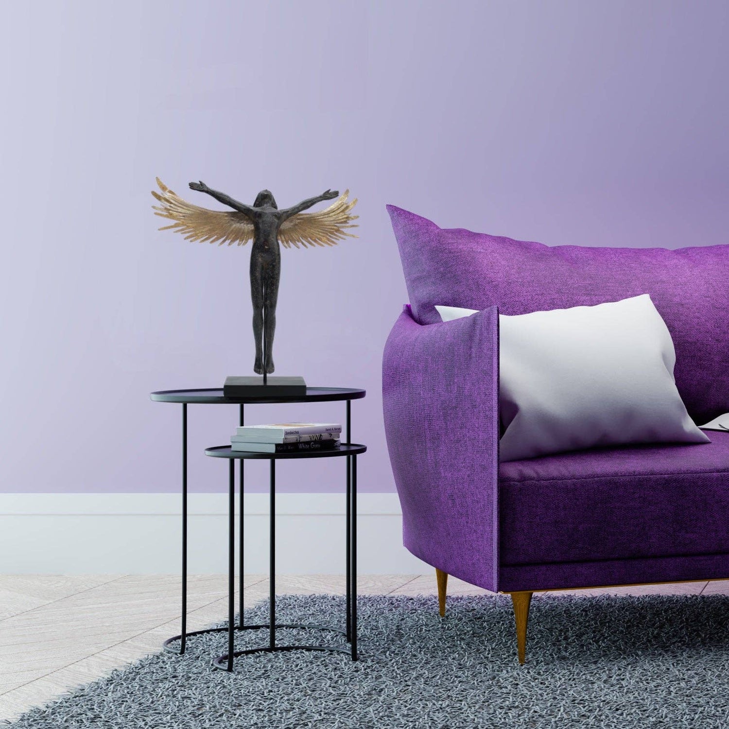 Introducing the Barbelo Figure, a captivating embodiment of ethereal beauty and modern charm. A statement sculpture of a gorgeous lady, hair flowing behind, with Gold metallic wings.