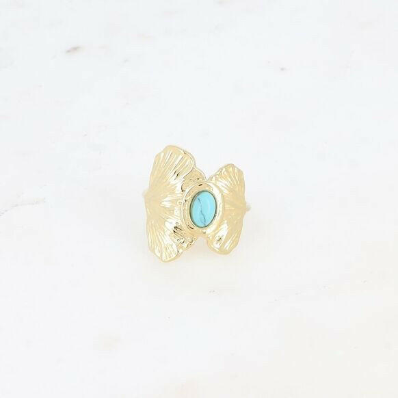 Elevate your style with the Bohm Paris Blue Ginkgo Ring. Crafted from stainless steel and adorned with two intricate ginkgo leaves and a small oval natural stone, this adjustable ring offers a perfect fit from size 50 to 58. With a sleek height of 20 mm and a slim thickness of 1 mm, this ring also guarantees to be nickel-free, cadmium-free, and lead salt-free, making it a safe and stylish choice.