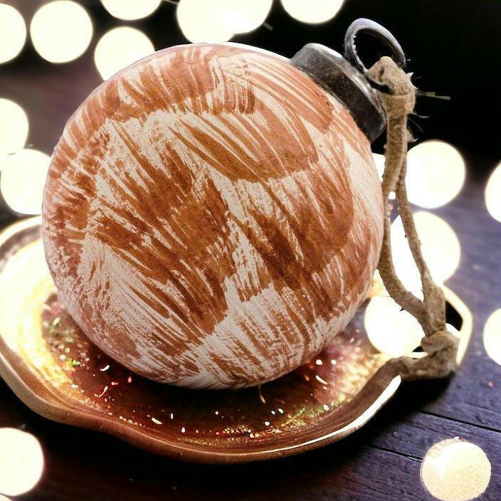 Each Bauble is hand finished, and brushed, so variations are to be expected. Finished off with a neutral suede hanging cord.
