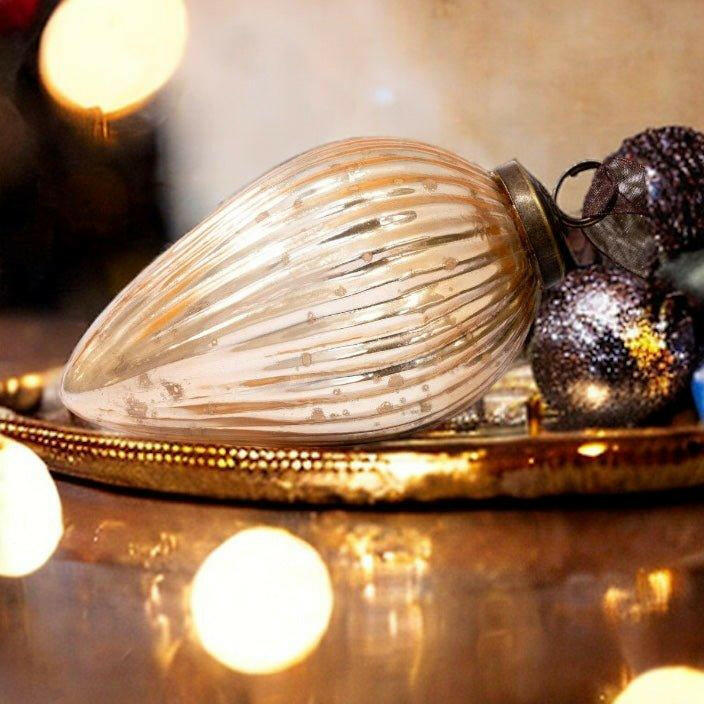 4" Extra Large Champagne Ribbed Glass Pinecone Bauble