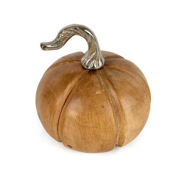 Small Mango Wood Pumpkin – Rustic Autumn Decor with Silver Stem