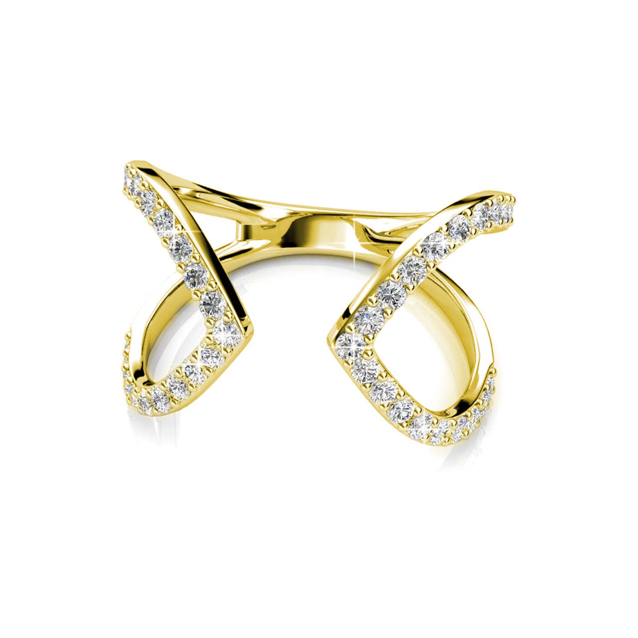 Elevate your jewelry box with this exquisite gold plated crystal ring, a must-have for those who appreciate fine craftsmanship and radiant sparkle.