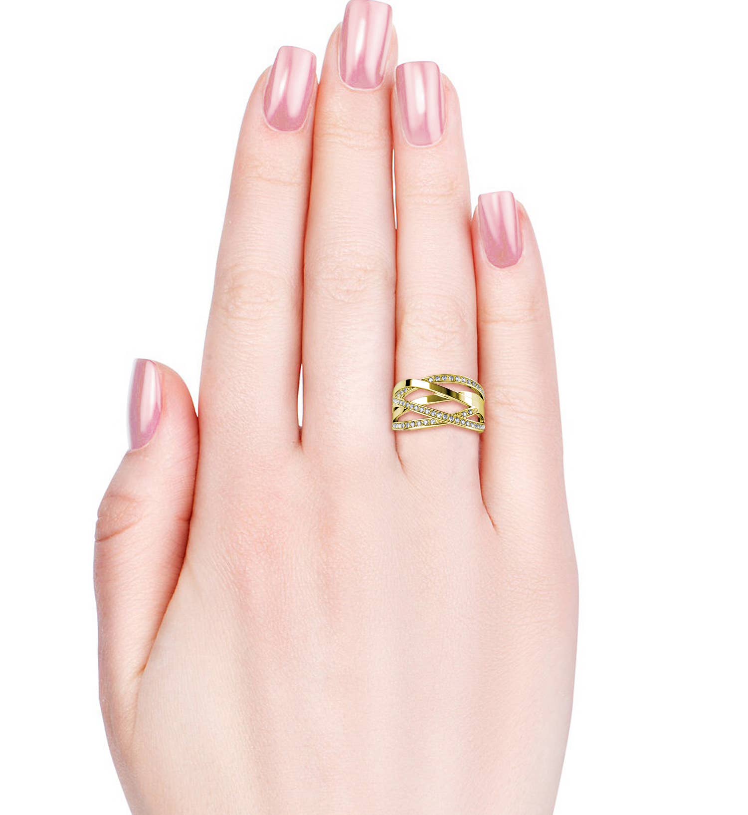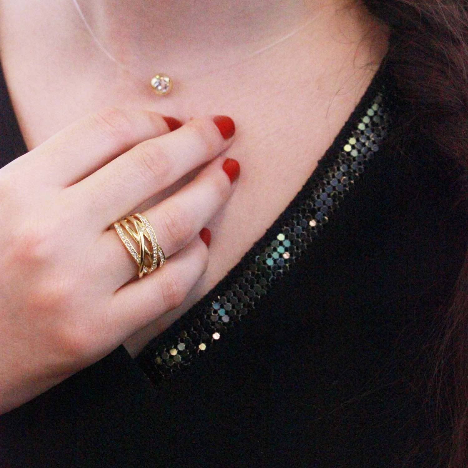 CARALI / MYC Paris - Criss Cross Ring - Gold and Crystal: 56