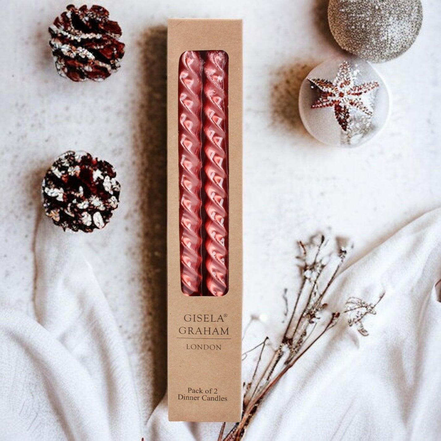 Gisela Graham Metallic Red Twist Dinner Candles