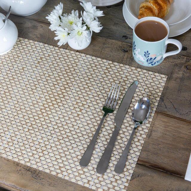 Protect your dinner table in style with this pretty placemat, decorated in beautiful cream with a print of smart beige squares. Made from a robust mix of PVC and polyester, this placemat wipes clean in seconds and guards against scratches and stains. It’s ideal for dining indoors or out.