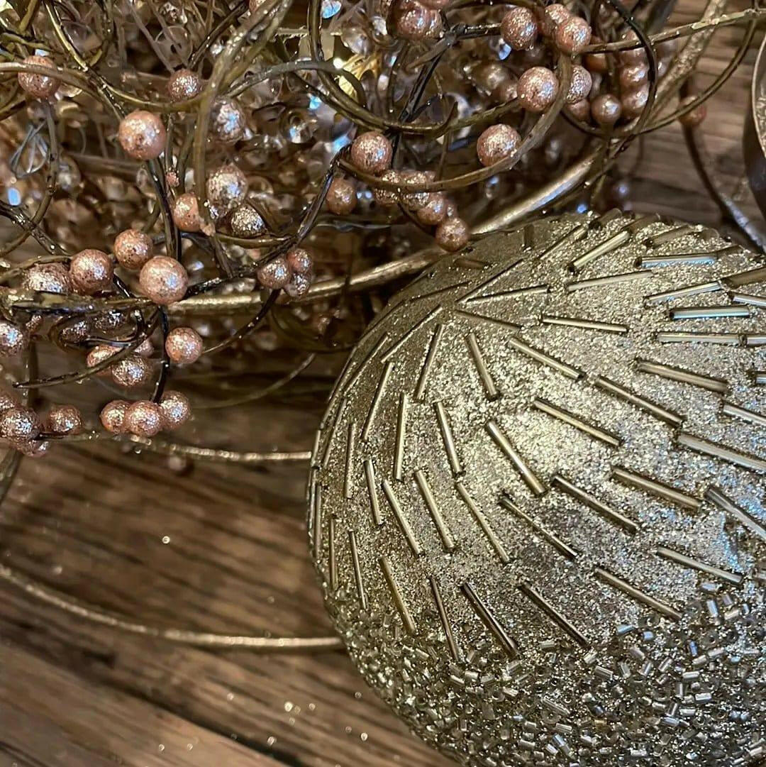 This Large Gold Beaded Bauble is the ideal festive home decoration. Its intricate beading and classic gold colour make it a timeless addition to your Christmas tree. The hand-crafted design adds a touch of luxury and sparkle, perfect for creating a special atmosphere.