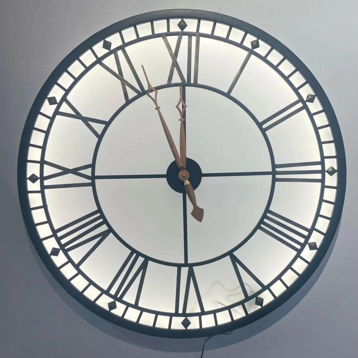 This practical and versatile large light up wall clock is sure to make a statement in your home decor. Mains operated. Please note this is a heavy, fragile item and someone will need to be available to take delivery.