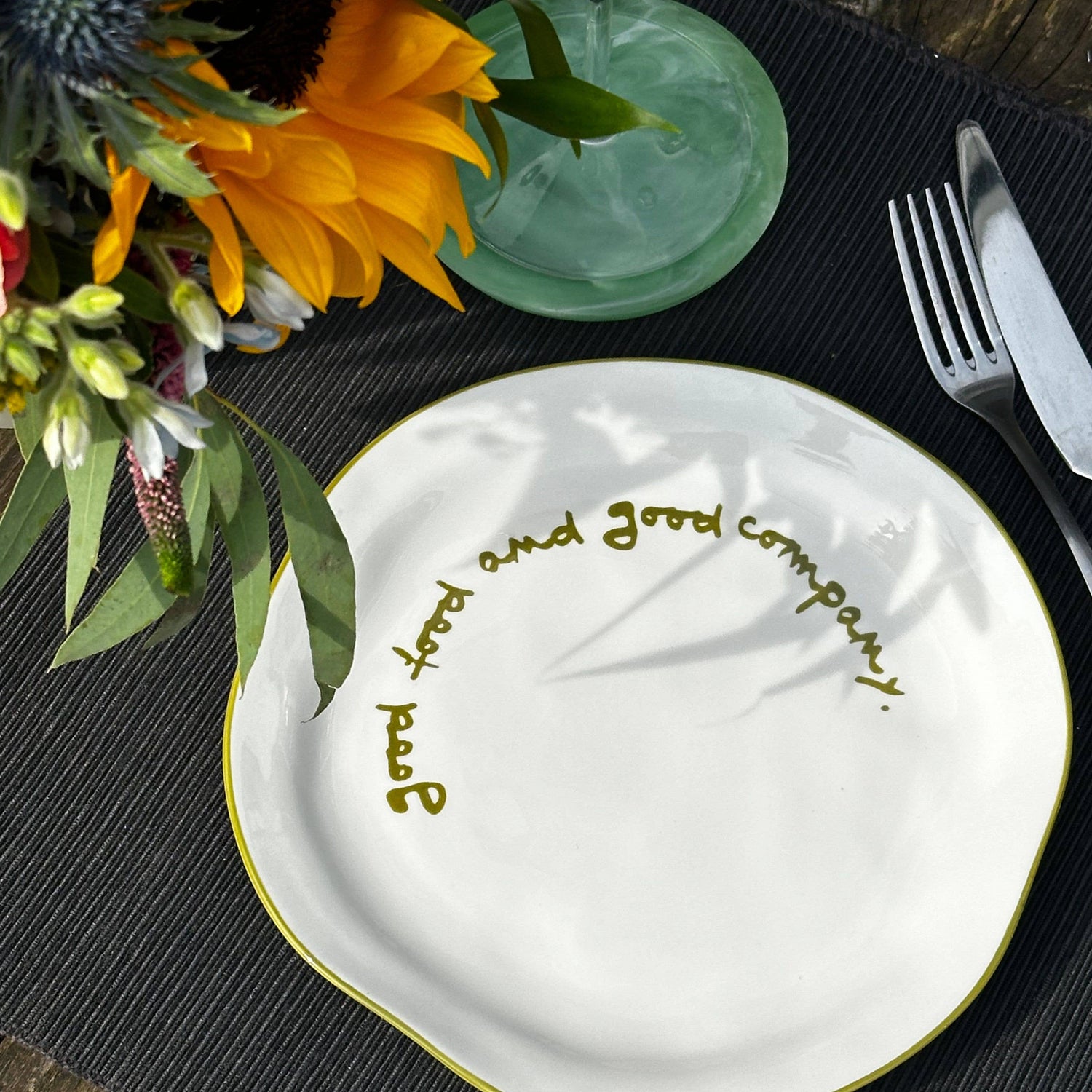 Celebrate the joy of gathering with our Statement Lunch Plate, boldly emblazoned with the heartwarming phrase "good food and good company." Crafted from high-quality stoneware, this plate brings a touch of personality and charm to every meal—making it perfect for hosts who love to impress.
