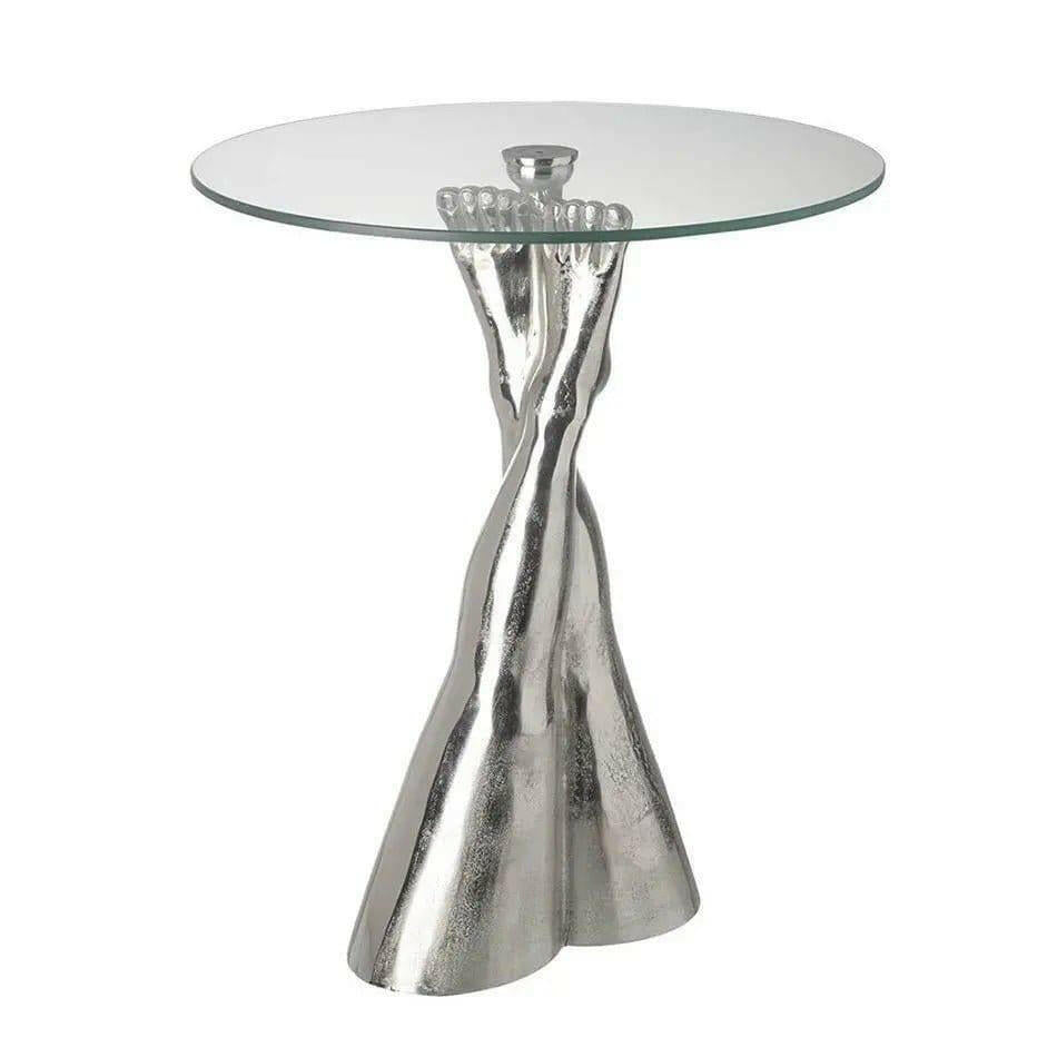 A talking point to be sure! This silver metal and glass side table features a pair of legs crossed and is definitely one of those home decor pieces that will stay with you.