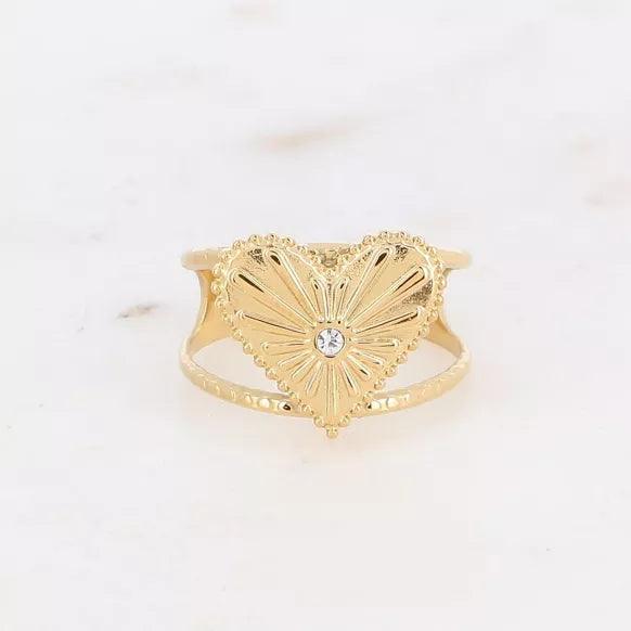 Ring - radiant heart motif and zirconium oxide