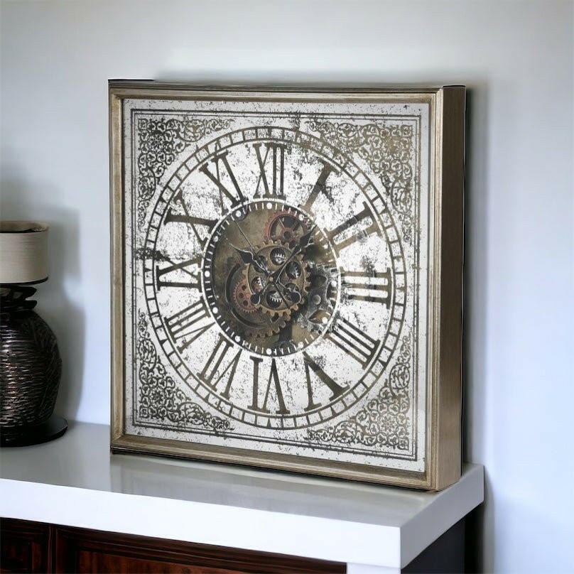 Square Moving Cogs Wall Clock