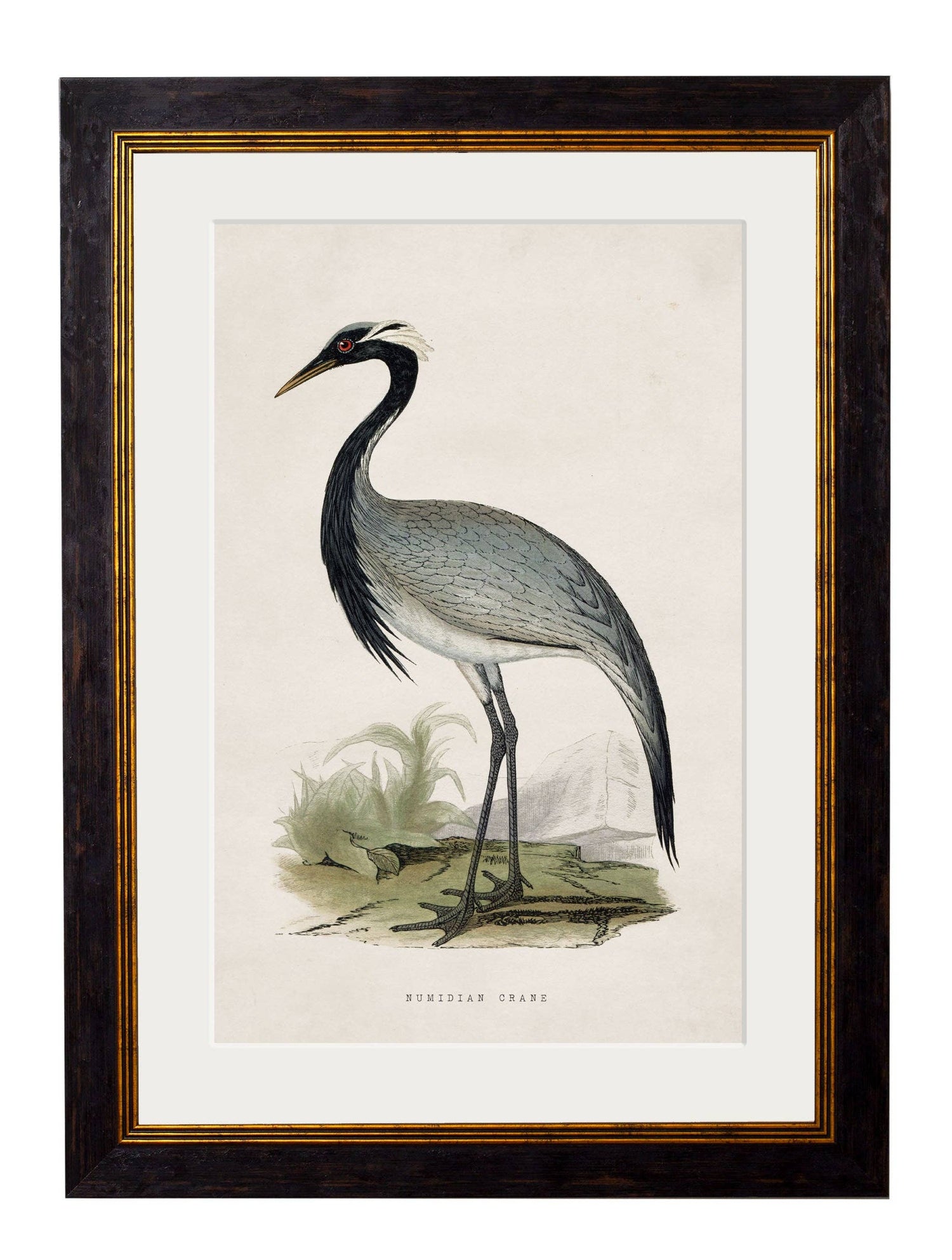 These delightfully detailed portraits of exotic wading birds reawaken a collection of British natural history illustrations from the mid-19th century, featuring a purple heron, black stork, crane and Numidian crane. Commanding a room either individually or as a gallery wall of all four, these beautiful prints are digitally restored here in our studio in Lancashire to bring them back to their former glory.
