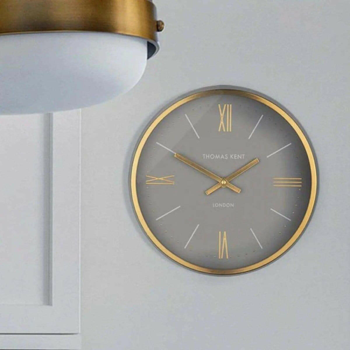 Our stylish 10" Dove Hampton kitchen clock is finished with a luxurious brass foiled edge and a numerals to match. A clock designed with the modern kitchen in mind.