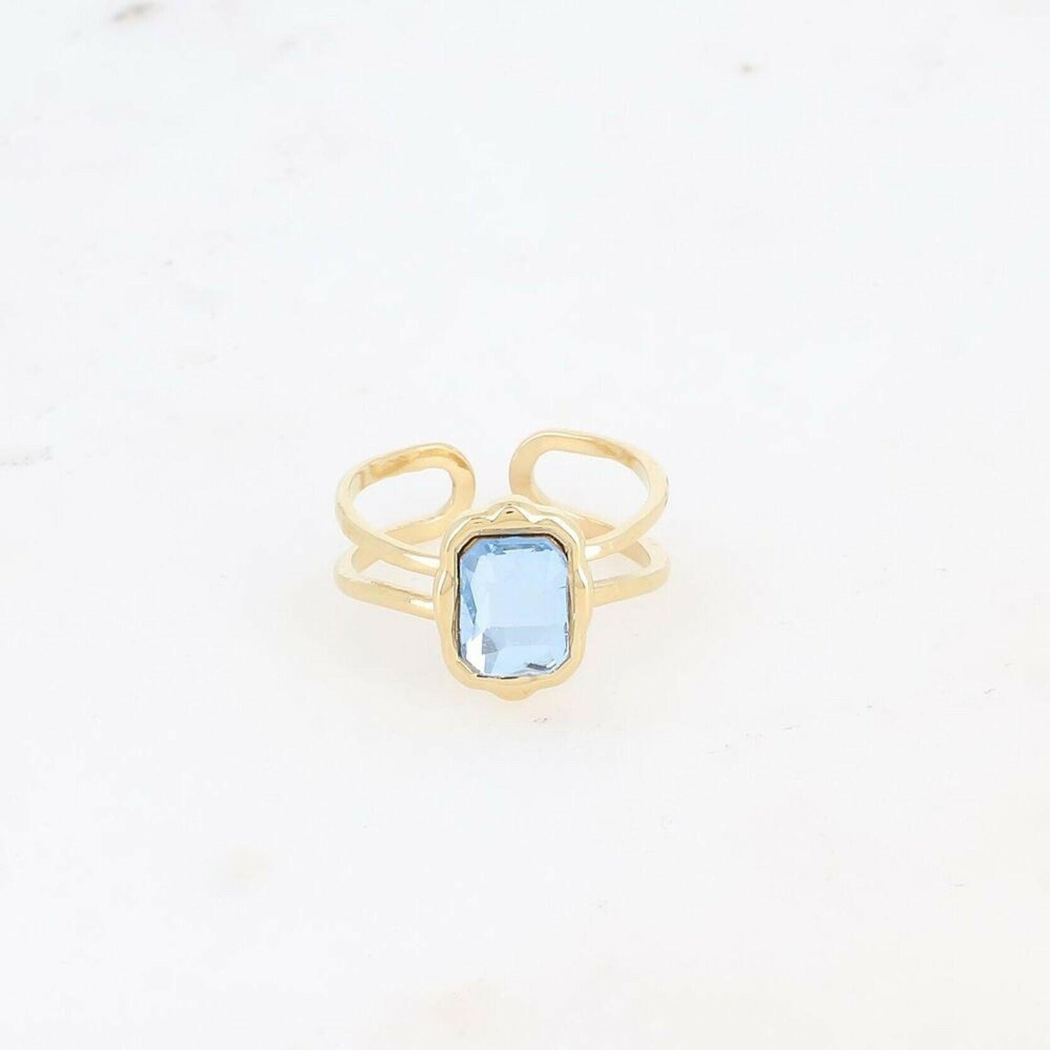 Stainless steel ring composed of an openwork ring and a cut crystal.