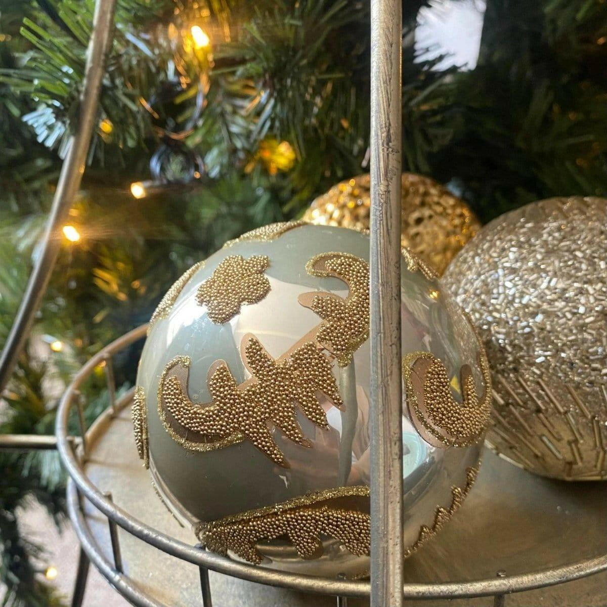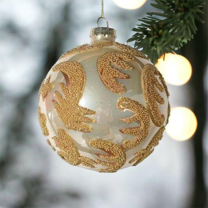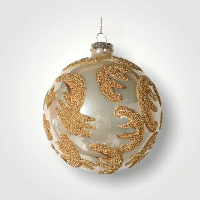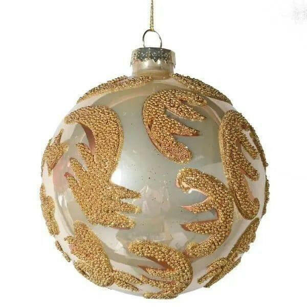 Adorn your Christmas tree with our White and Gold Beaded Bauble. This gorgeous oversized bauble, features an intricate design made of gold beads.