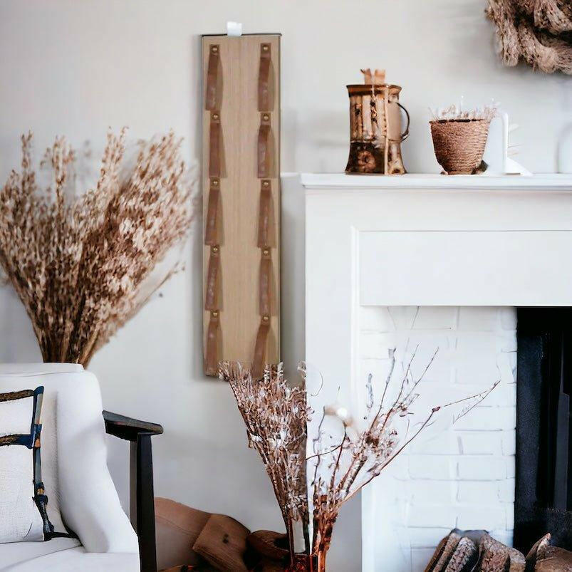 This wood and faux leather strap bottle holder will make the perfect addition to your kitchen! And for keeping on eye on the wine!